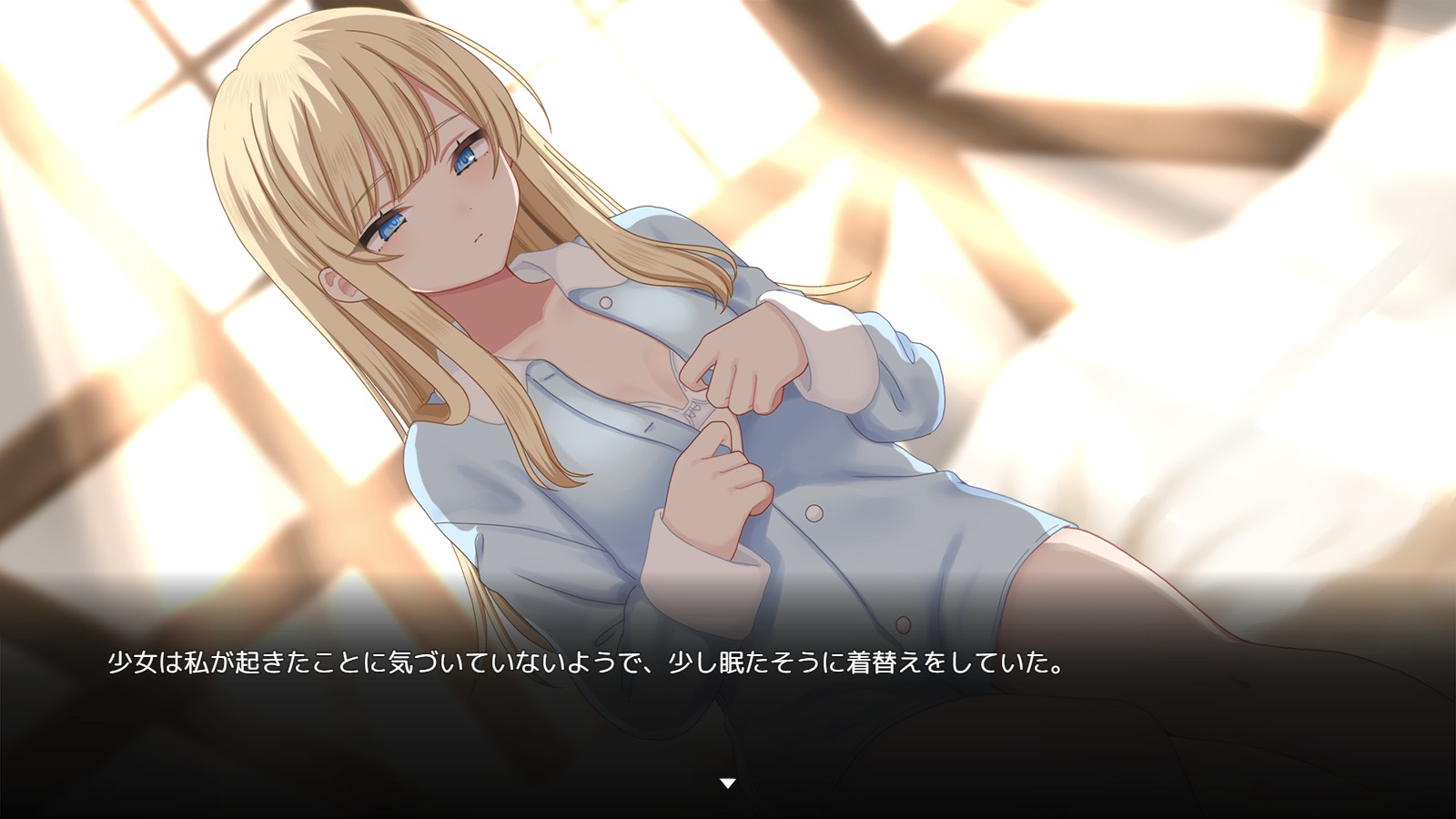 本作は同棲生活系ですがコミュニケーション要素は薄いです。会話やスキンシップで好感度を上げる必要はあるものの、テキスト量が全体的に少なめでシスターちゃんの名前すら最後まで分かりません(これ…LostLifeでもあったな…)。プレイ時間はHAPPY&BADエンディング到達まで約2時間、最初のHシーンまで約10分でした。
